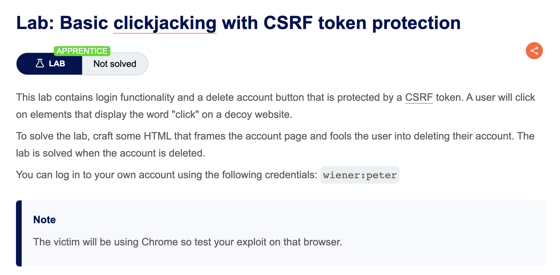 이번 문제는 클릭재킹 문제로 사용자는 click이라는 단어를 클릭한다는 조건과 계정을 삭제하게 만들어야되는 문제다.