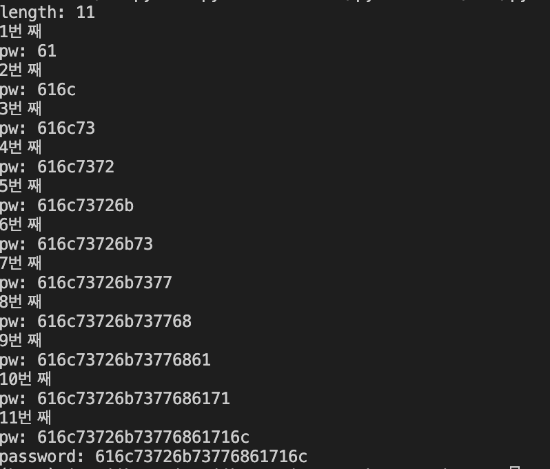 이렇게 pw의 길이를 알아내게 되면 값을 출력해야 되는데 우리는 싱글쿼터와 char함수를 필터링되었으므로 0x를 이용해 hex값으로 출력하면