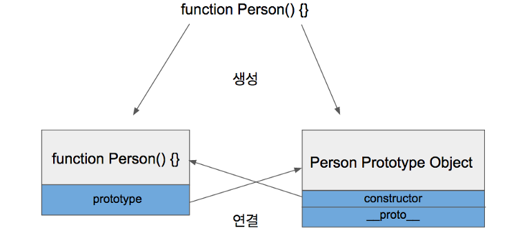 Prototype Object의 속성 중 __proto__를 통해 함수 객체와 연결되어 있다.