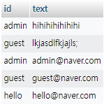 여기서 sql문을 SELECT id,text FROM `board` UNION SELECT id,email FROM `member` 을 입력할시